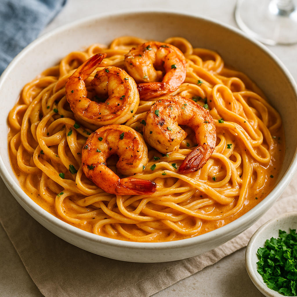 A spicy and flavorful dish combining shrimp, pasta, and a creamy Cajun sauce, perfect for any seafood lover.