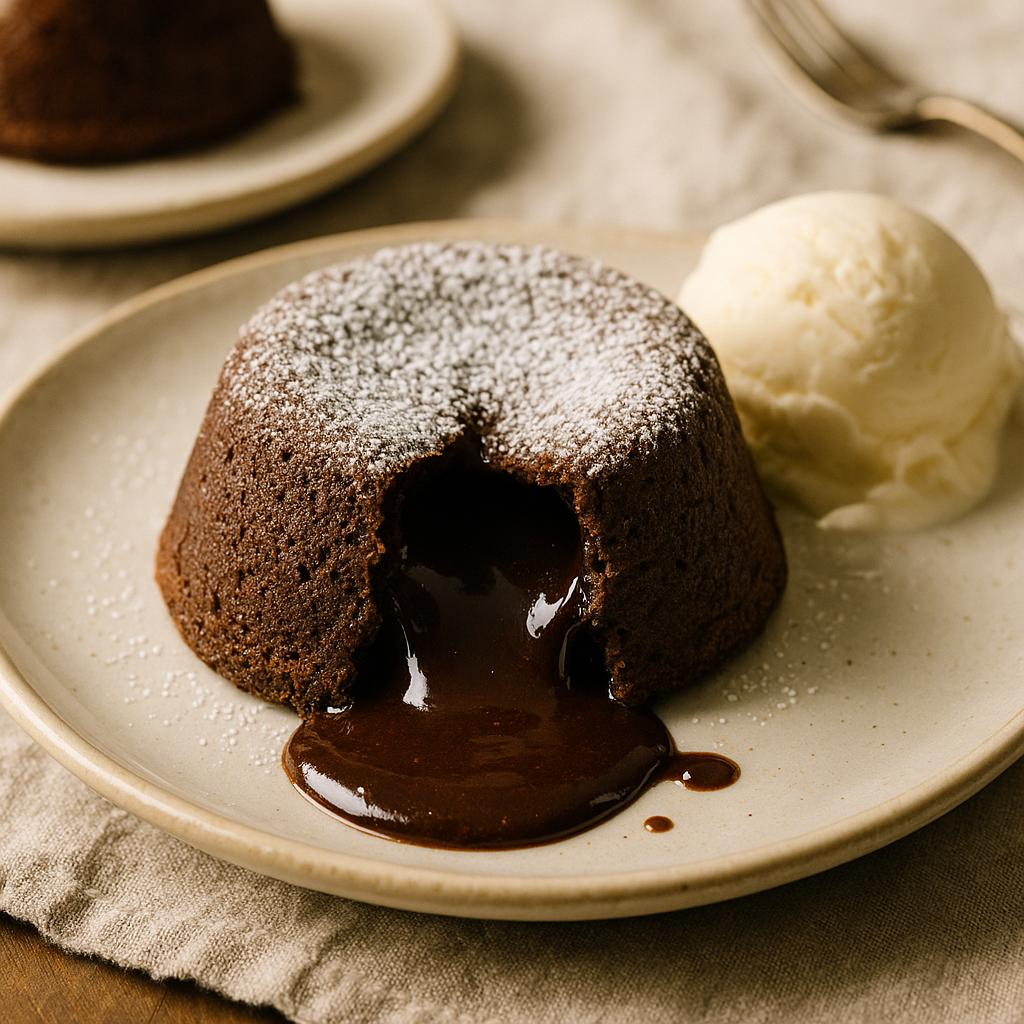 Indulge in the rich, gooey goodness of chocolate lava cake, featuring a crisp outer shell and a warm, molten center. Perfect for chocolate love