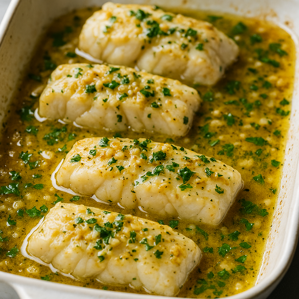 Deliciously tender cod fillets baked in a rich garlic butter sauce, creating a perfect balance of flavors. This dis
