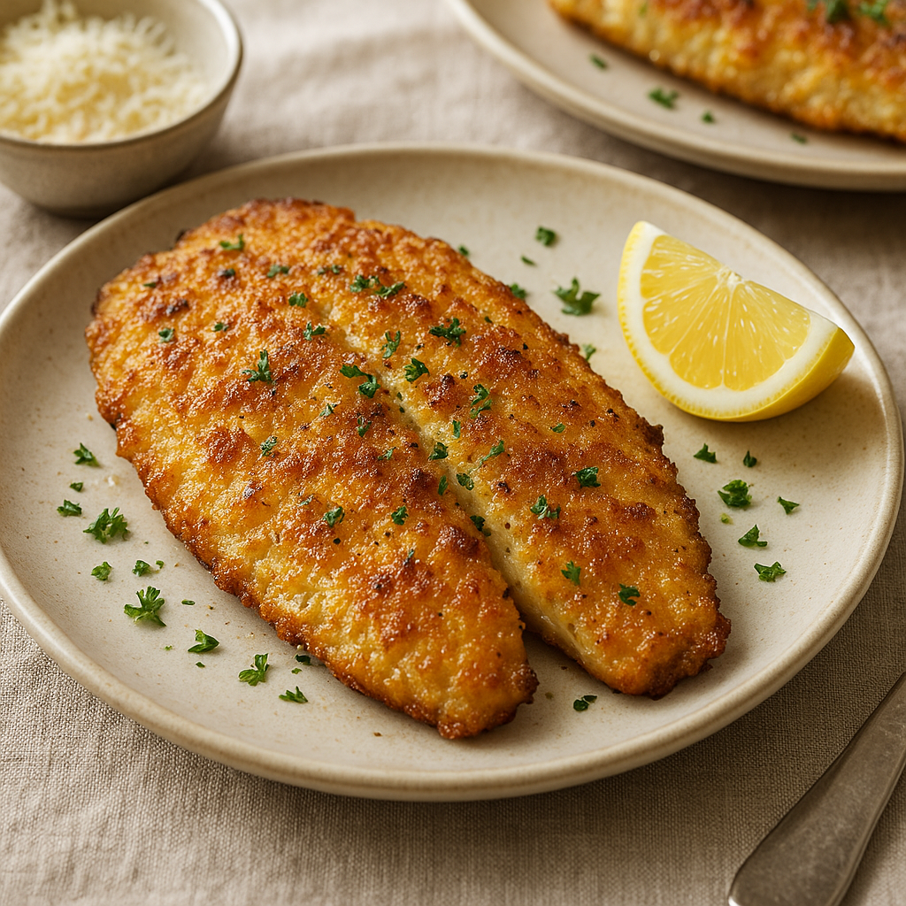 Experience the tender juiciness of tilapia contrasted with a golden, crispy Parmesan crust. This dish brings vibran