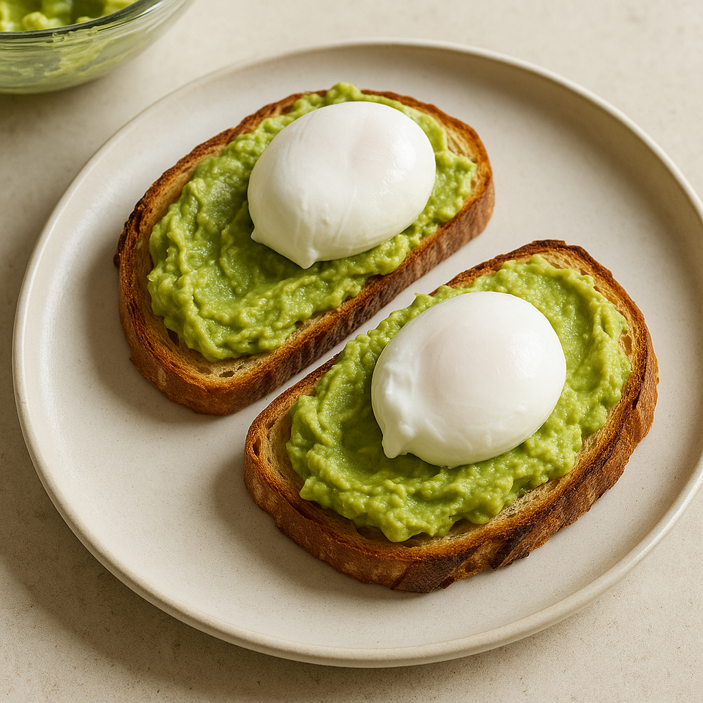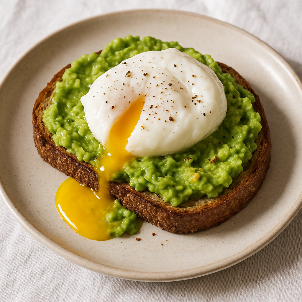 Avocado Toast with Poached Egg is a modern culinary staple that combines creamy, ripe avocado with a runny poached egg, all resting atop a slice of crispy, toasted bread. This dish offers a wonderful contrast between the crunch of the toast and the smoothness of the avocado, enhanced by the richness of the egg yolk that flows upon cutting into the egg. The brightness of a sprinkle of salt and a dash of pepper completes the experience, making each bite both indulgent and fresh.
