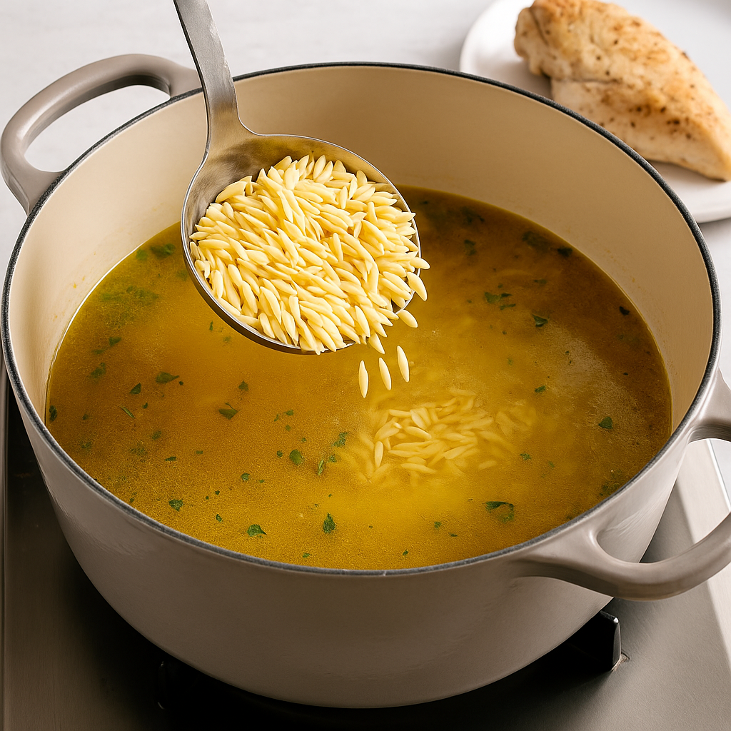 Orzo can be replaced with rice or quinoa for variation.