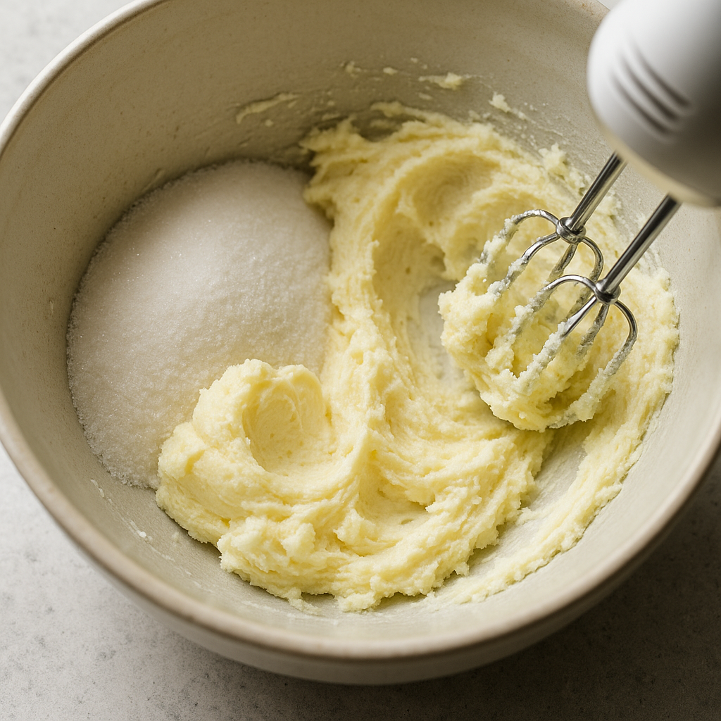 In a large mixing bowl, cream together the softened butter and granulated sugar until light and fluffy, about 3-5 minutes.