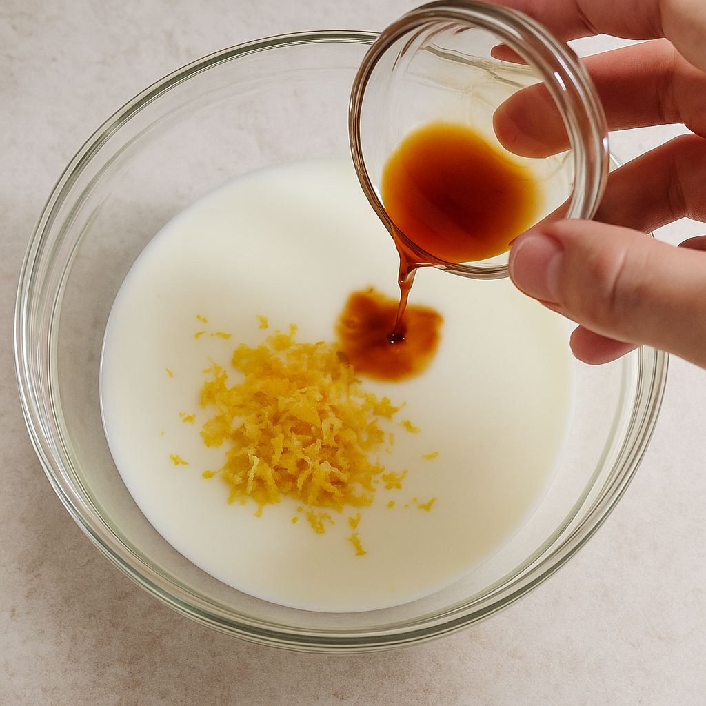 In a separate bowl, combine buttermilk, lemon zest, and vanilla extract.