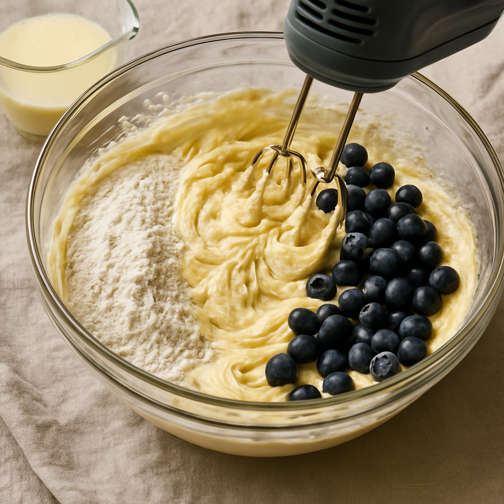 Gently fold the blueberries into the batter, being careful not to break them apart.