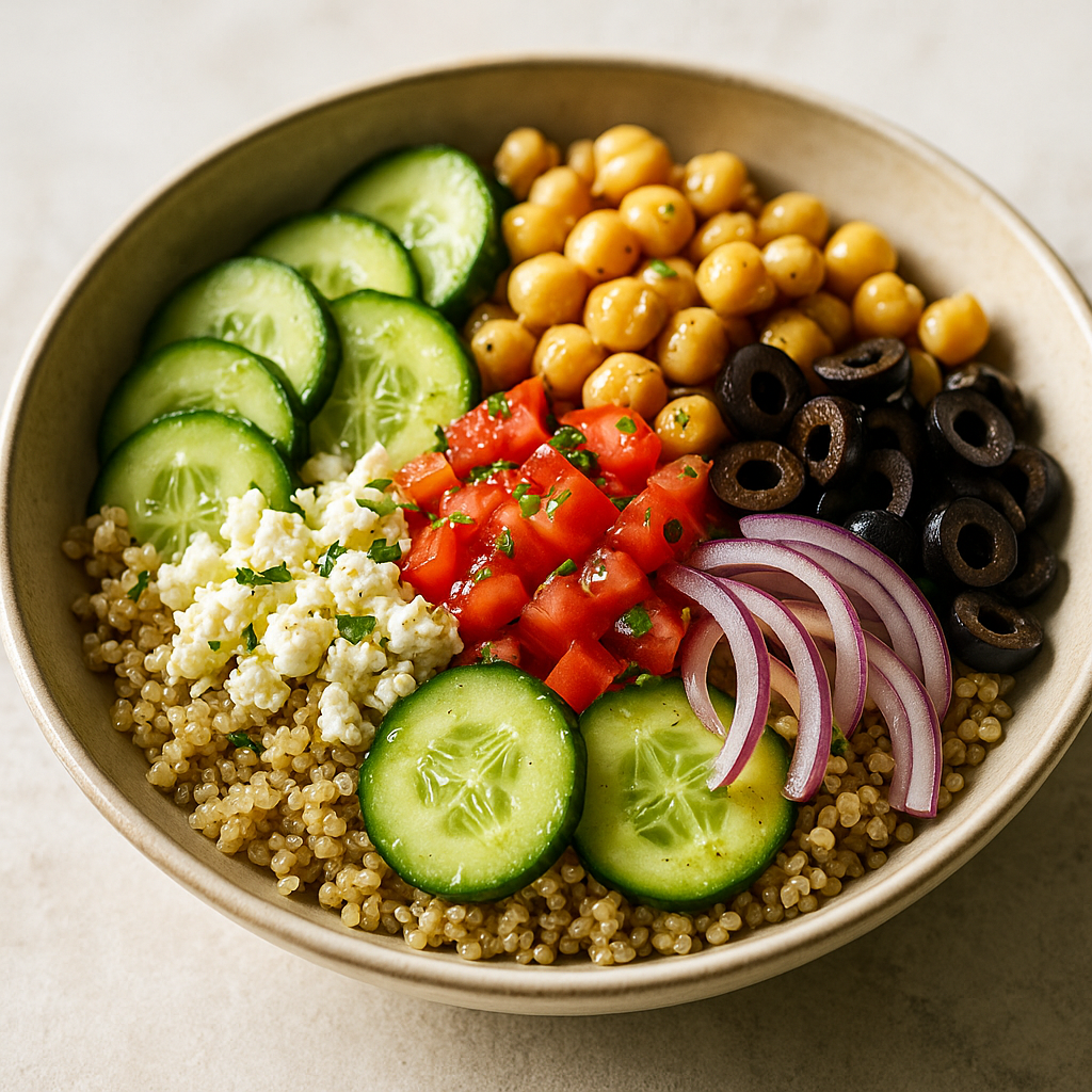The Mediterranean Quinoa Bowl is a delightful blend of fluffy quinoa, crisp cucumbers, juicy cherry tomatoes, and creamy feta cheese, all tossed together for a healthy meal that satisfies. The contrast between the cool crunch of the veggies and the warm, nutty quinoa creates a refreshing experience, making each bite exciting and wholesome. The addition of a zesty lemon vinaigrette ties everything together, enhancing the vibrant flavors and adding just the right amount of brightness.