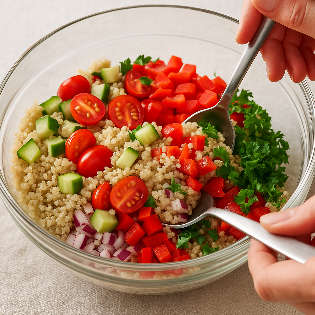 This dish showcases the beauty of simple ingredients and their ability to come together in harmony. The quinoa acts as a perfect base, not only providing protein but also a subtle earthiness that complements the fresh produce. The cooking technique of rinsing the quinoa before boiling removes any bitterness, ensuring a pure flavor that is enhanced by the crunchy, colorful toppings. Each ingredient plays its part, making the Mediterranean Quinoa Bowl a comforting and nutritious choice.